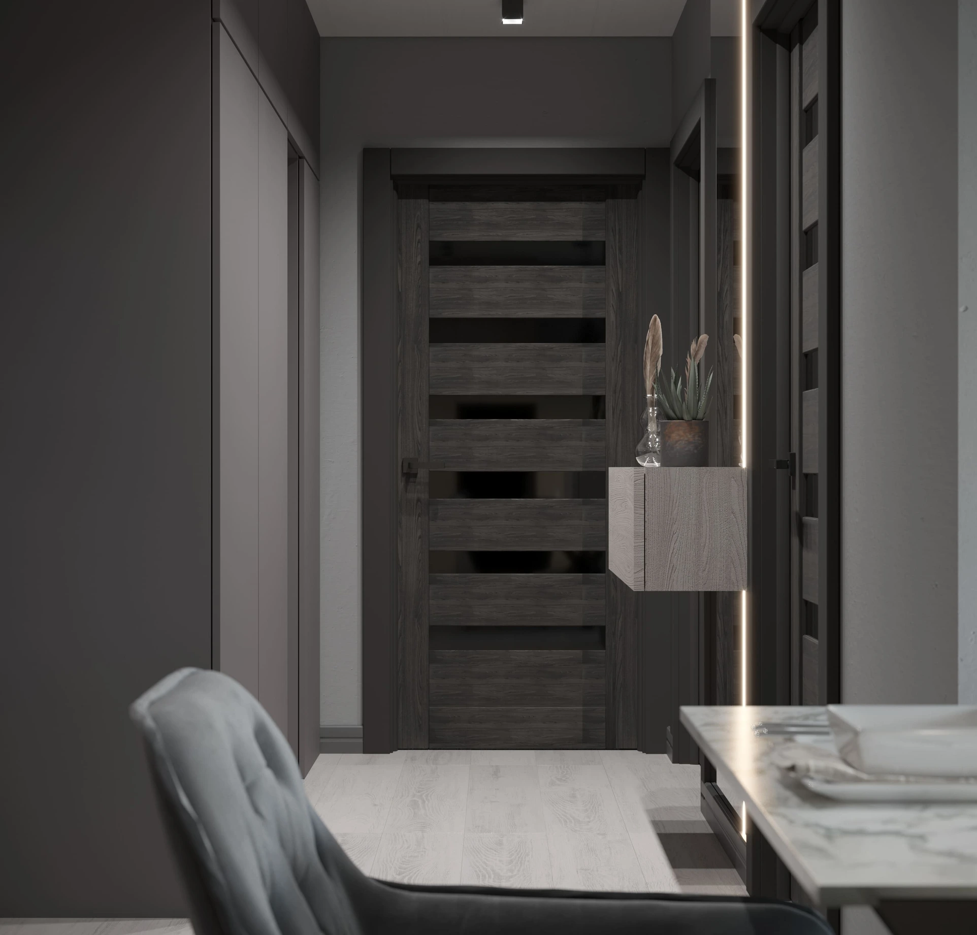 The “Grace of Grey” project is a modern interior design concept that revolves around the use of various shades of grey to create an elegant and sophisticated atmosphere.