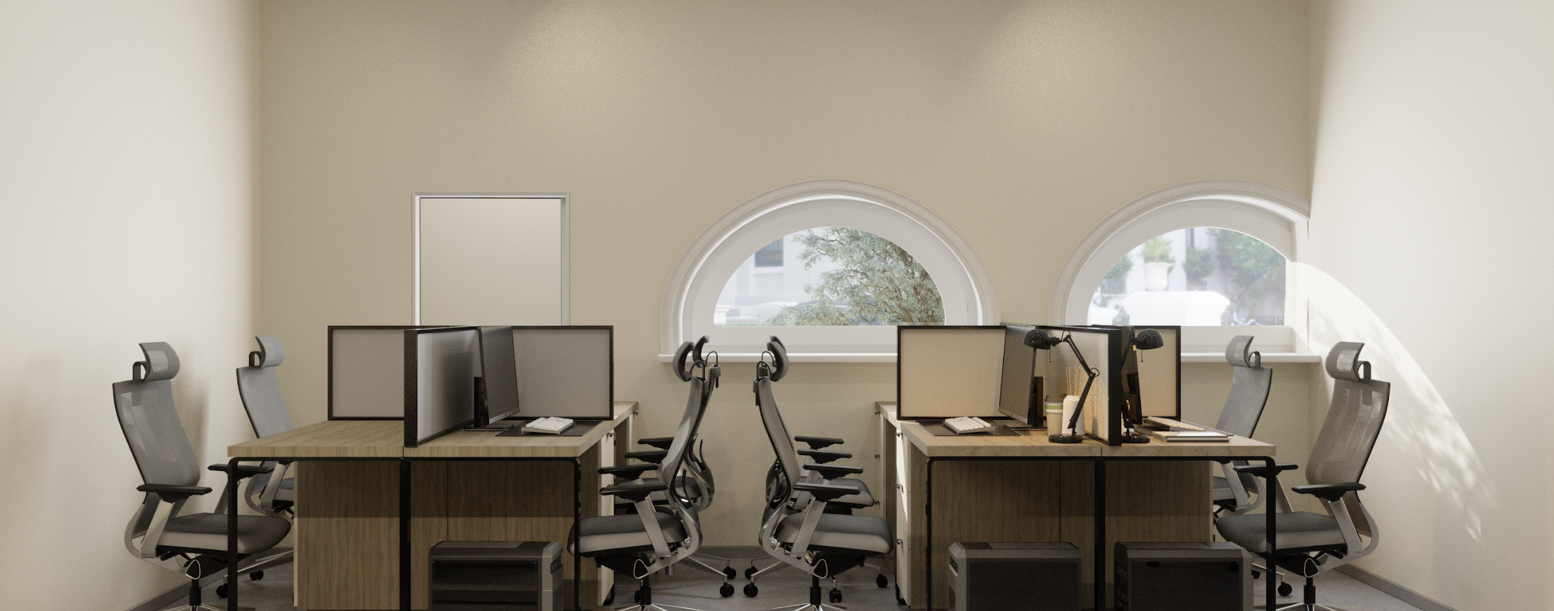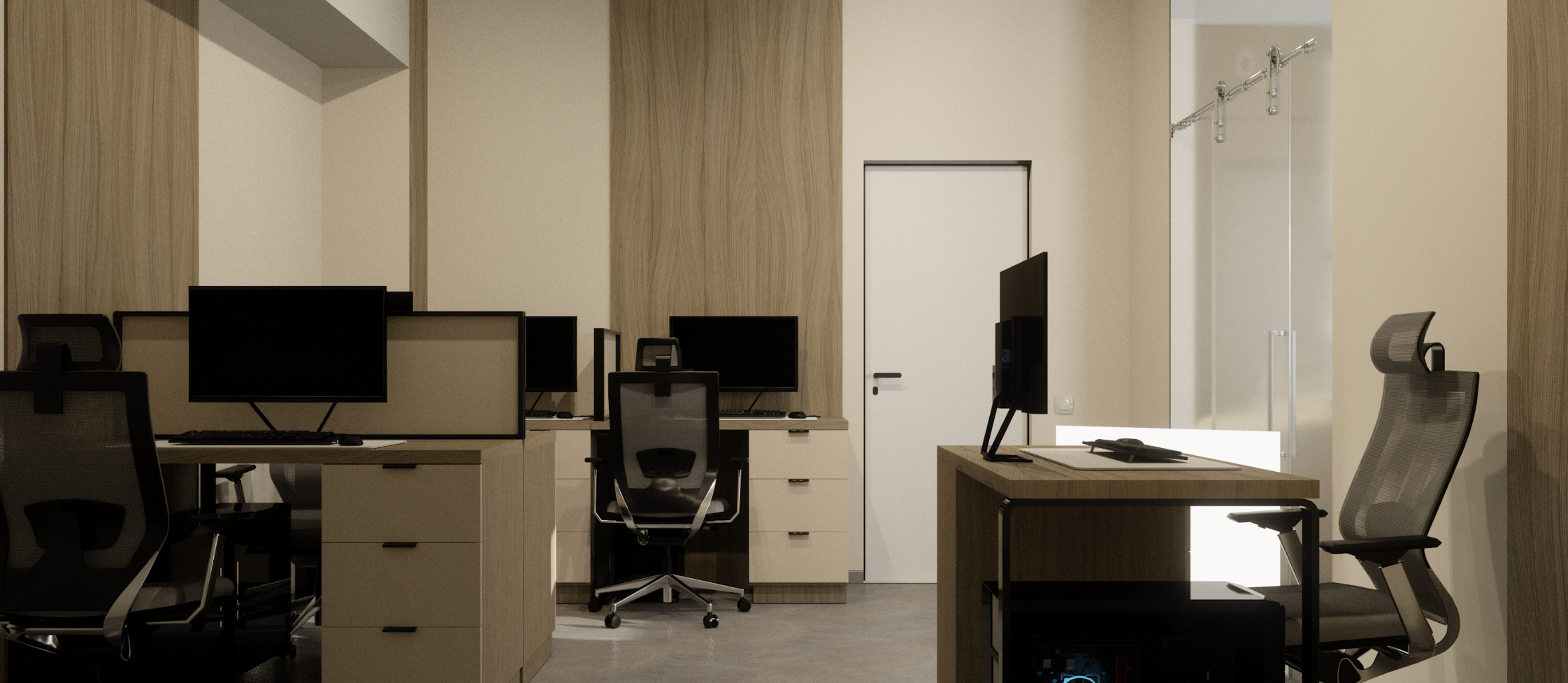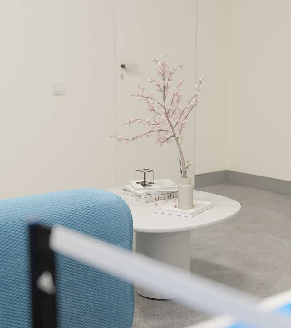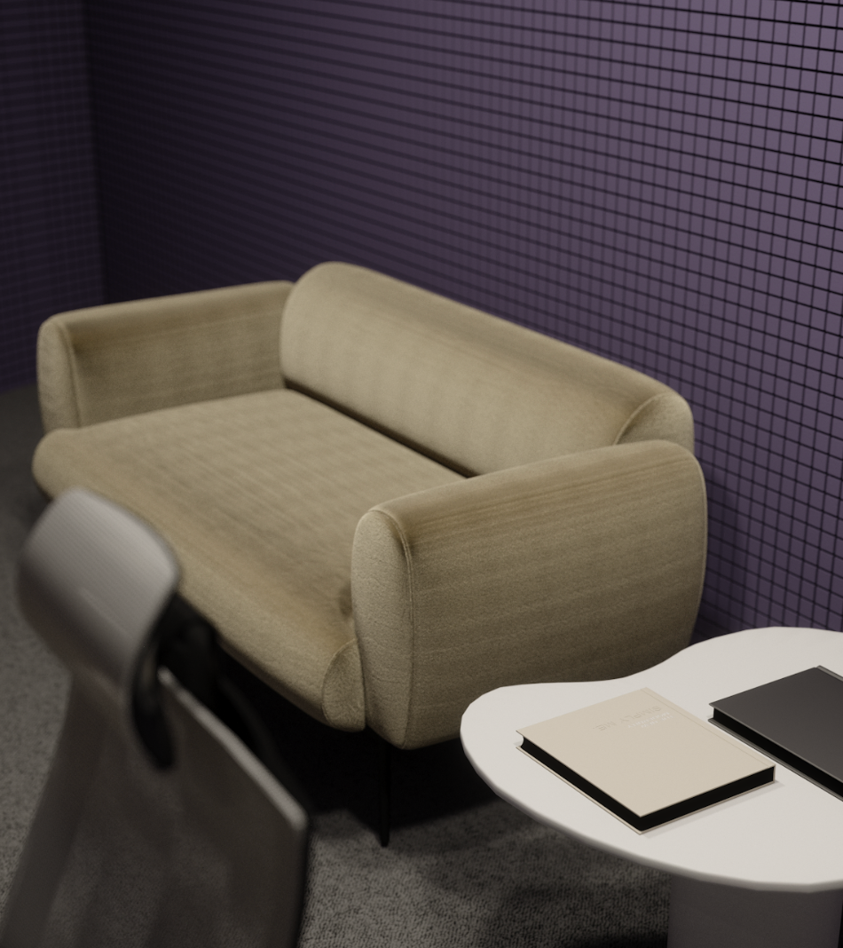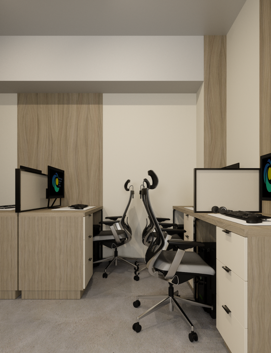 Relaxation areas, enriched with greenery and soft seating, create a welcoming environment for informal discussions and downtime. A dedicated recording studio, featuring soundproofing, professional audio equipment, and a modern workspace, supports podcasts, music production, and digital content creation.