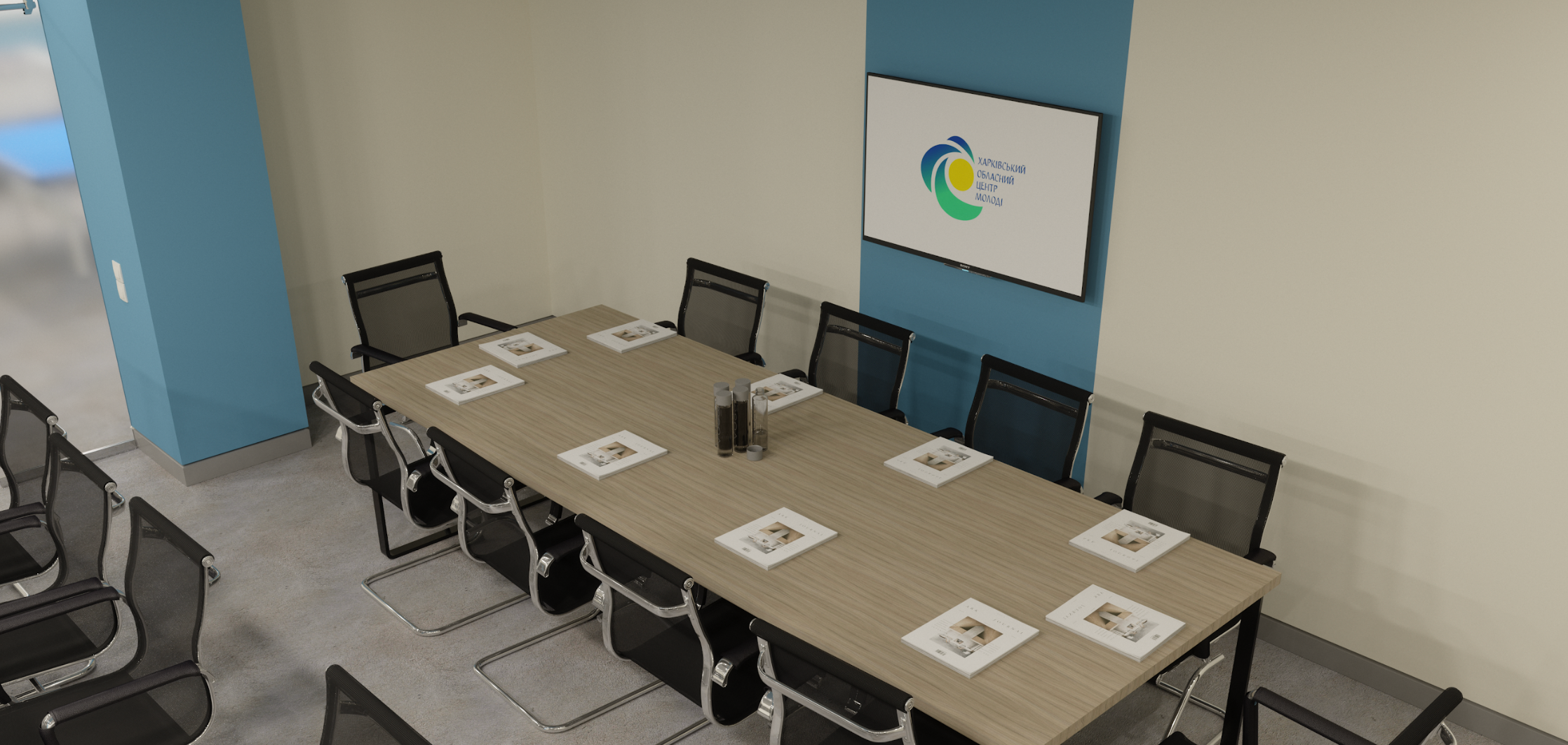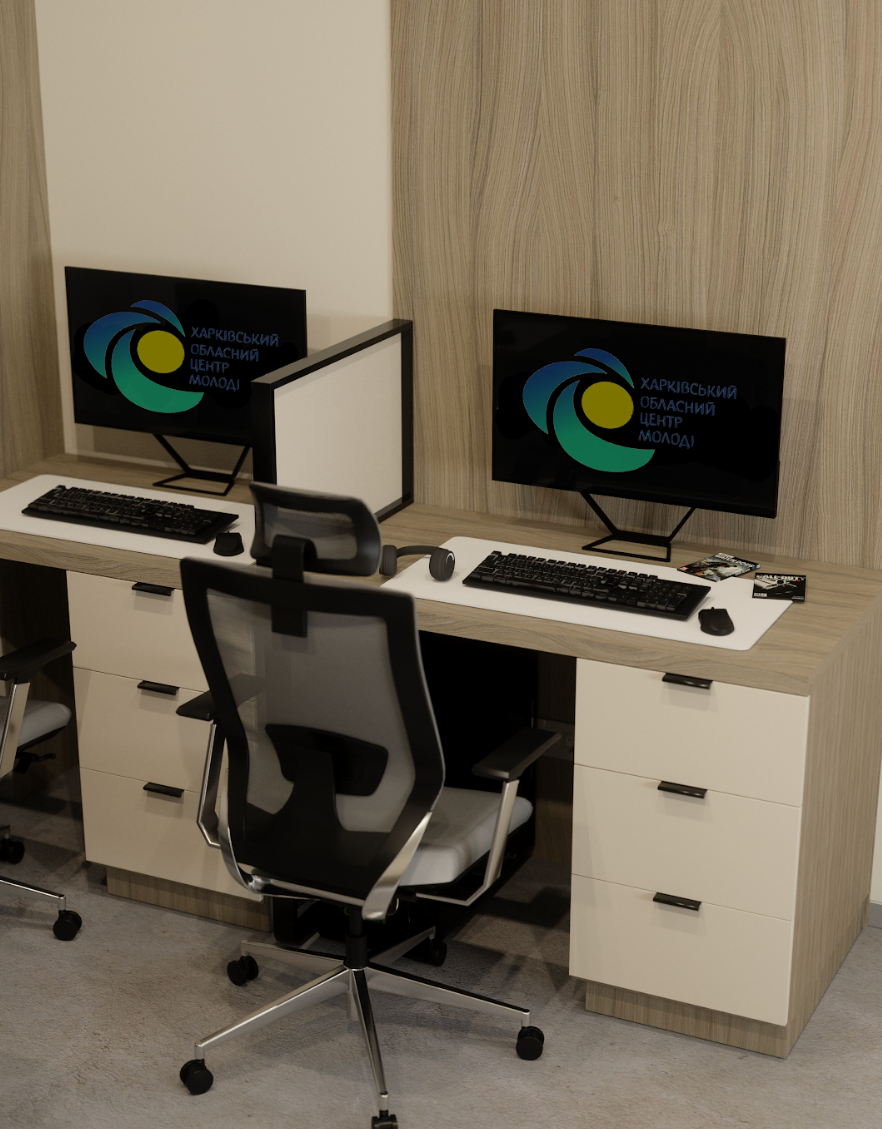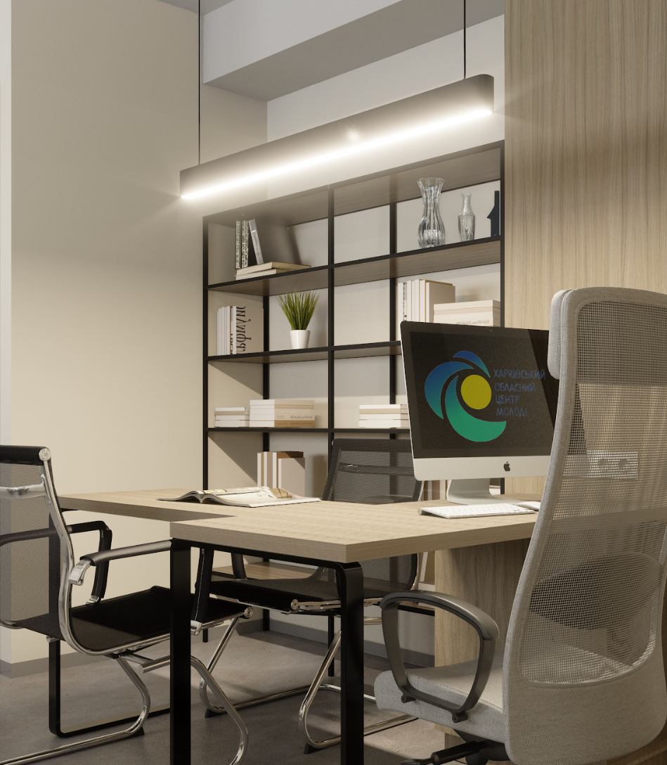 The design blends vibrant accent colors, warm lighting, and tactile materials, fostering an engaging and inspiring atmosphere for youth-driven initiatives.