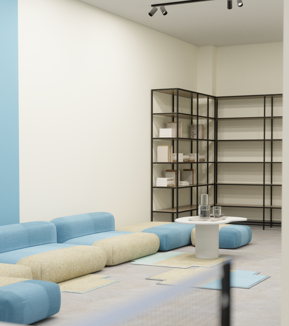 Open coworking zones with modular furniture encourage flexibility, while interactive creative spaces provide areas for workshops,brainstorming, and artistic expression.