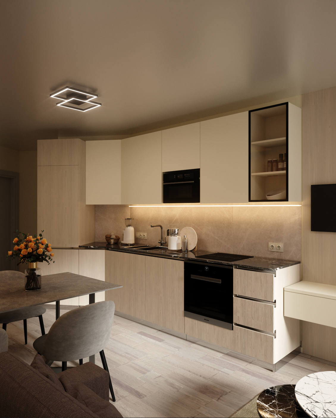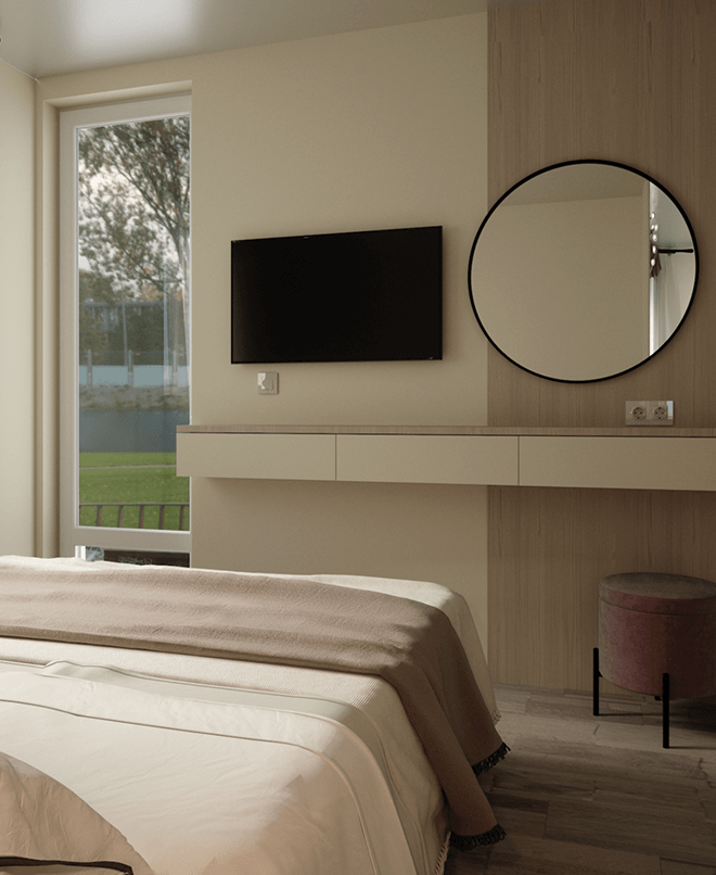 The “Serenity Shores” project is a contemporary interior design concept for the residential complex located in Sveti Vlas, Bulgaria. This design focuses on blending modern aesthetics with natural elements to create a serene and inviting living space.