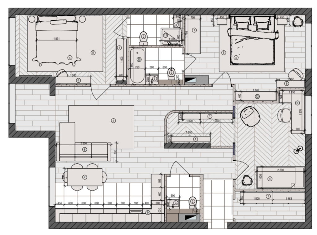 The spacious rooms are designed with a focus on functionality and aesthetics, allowing for the efficient use of every square meter.